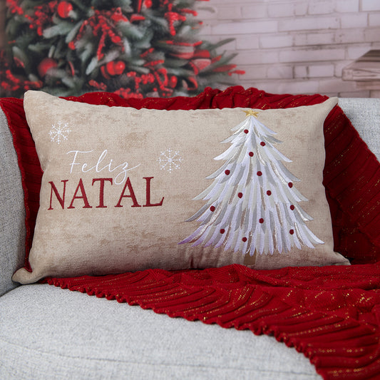 Capa Almofada Aveludada Bordada Árvore de Natal 35x55cm