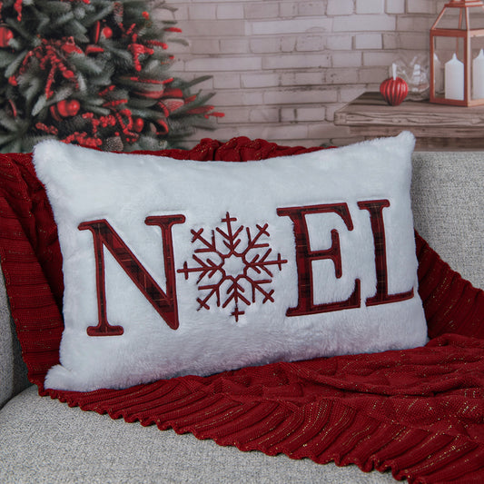 Capa Almofada Natalina Bordada c/ Pelúcia Branca e Veludo Vermelho 35x55cm