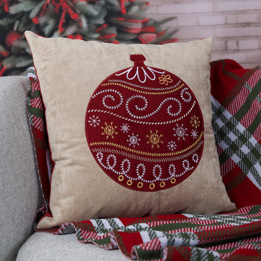 Capa Almofada Aveludada Bordada Enfeite Bola de Natal 43x43cm
