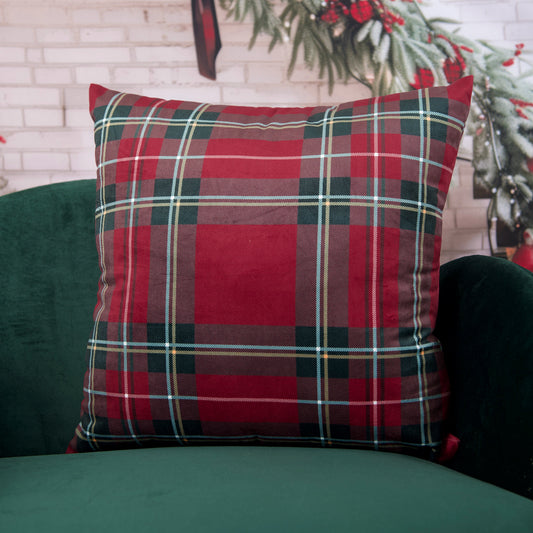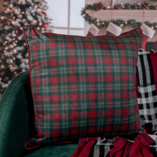 Capa Almofada Natalina Veludo Xadrez Clássica 50x50cm c/ Cordonê