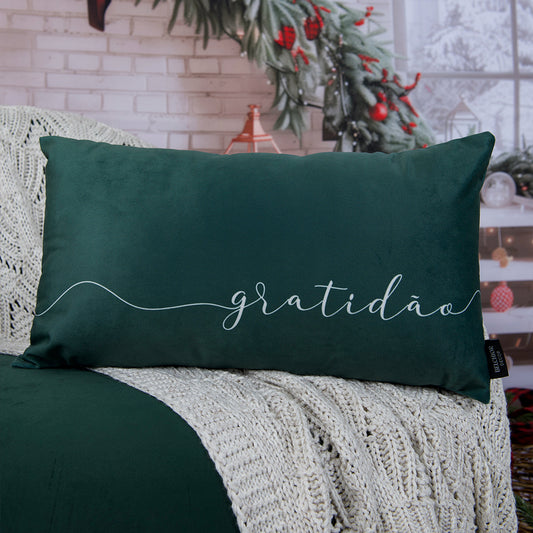 Capa Almofada Natalina Veludo Verde - Gratidão 28x48cm