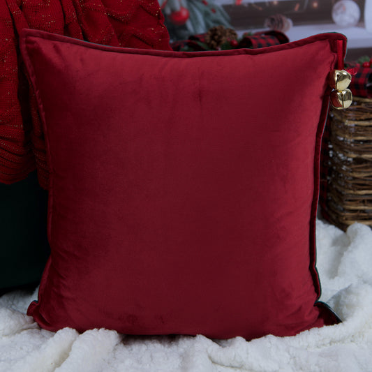 Capa Almofada Natalina Lisa Veludo Vermelho e Verde c/ Guizos 43x43cm