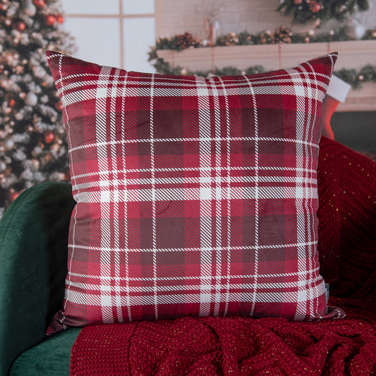 Capa p/ Almofada Aveludada Natalina Xadrez Vermelha 50x50cm