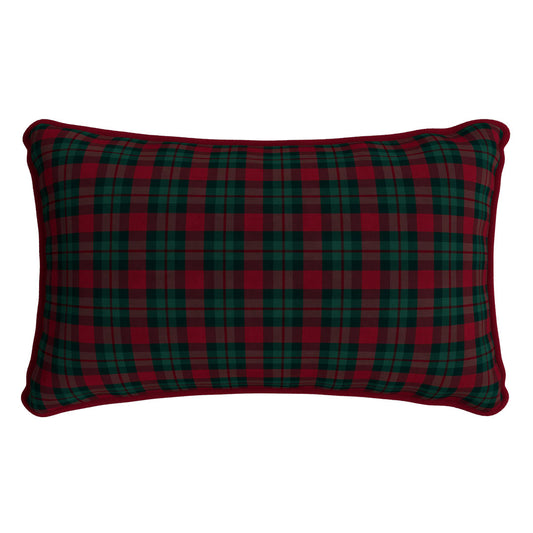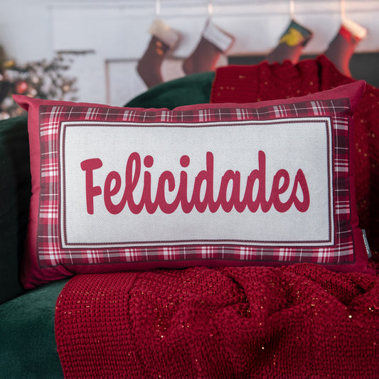 Capa p/ Almofada Aveludada Natalina Retangular Felicidades Xadrez Vermelha 28x48cm