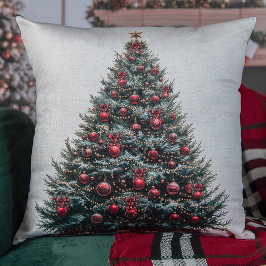 Capa p/ Almofada Aveludada Natalina Árvore de Natal Xadrez Vermelha 50x50cm