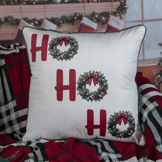 Capa p/ Almofada Aveludada Natalina c/ Cordone Ho Ho Ho 43x43cm