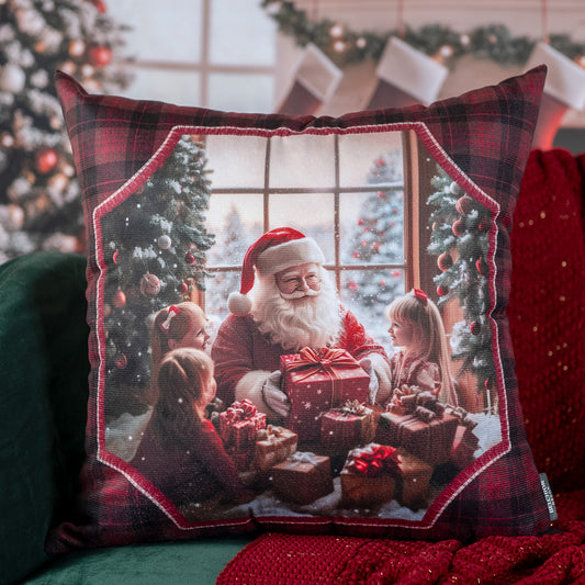 Capa p/ Almofada Natalina Papai Noel Xadrez Vermelho 43x43cm