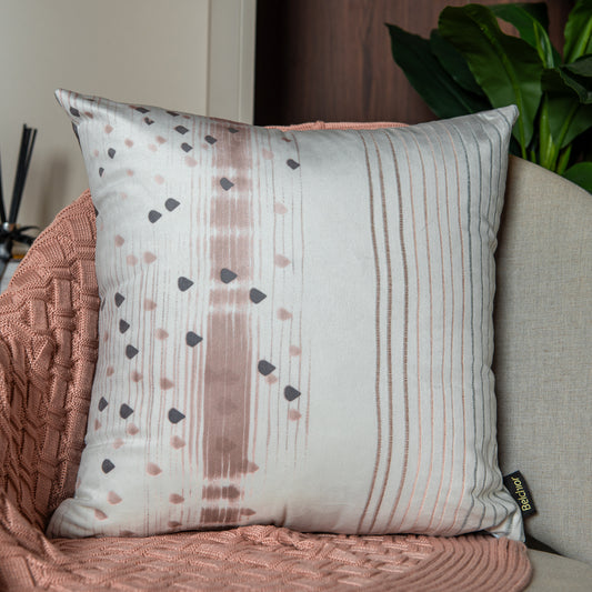 Capa Almofada Veludo Bordada c/ Pontos Rosê Branca 43x43cm