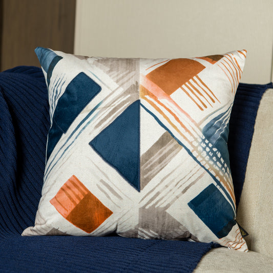 Capa Almofada Veludo Terracota e Azul 43x43cm