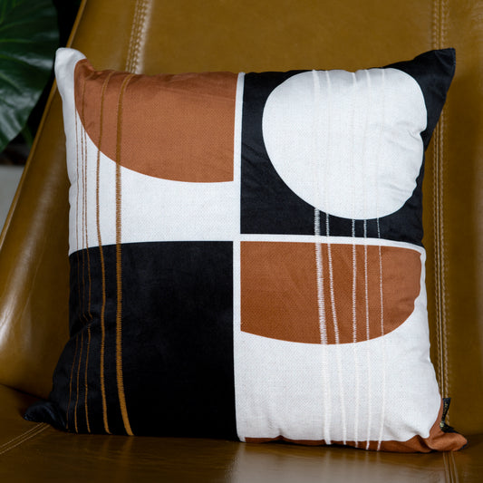 Capa Almofada Veludo Bordada Terracota Geométrica 43x43cm