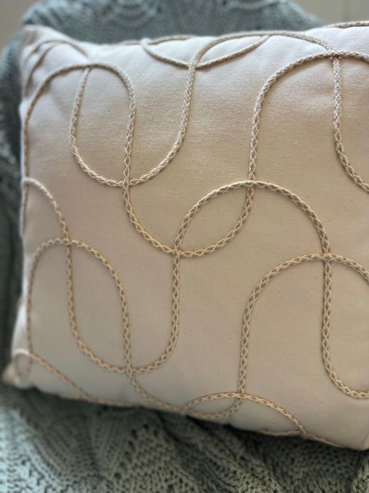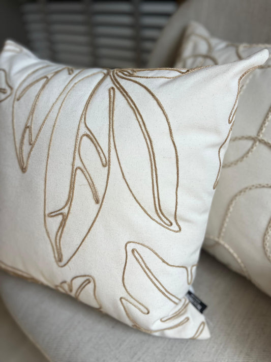 Capa Almofada Bordada Rústica Bege e Cru Donatella 43x43cm