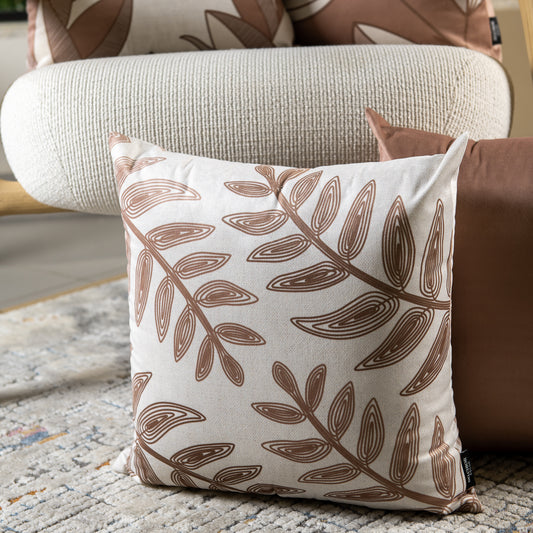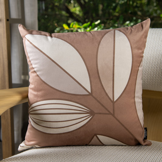 Capa Almofada Veludo Luxor Folhas Marrom e Branco 43x43cm