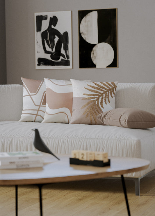 Capa Almofada Veludo Luxor Folhas Areia e Branco 43x43cm