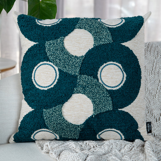 Capa Almofada Bordada com Fio Boucle Turquesa 50x50cm Concept