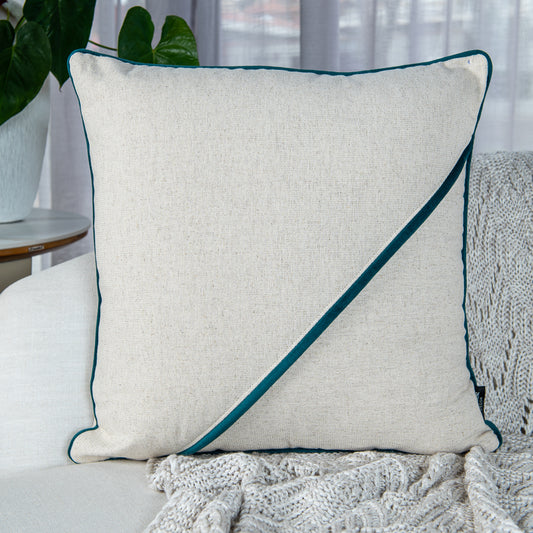 Capa Almofada cor Linho com Cordonê Turquesa 50x50cm Concept