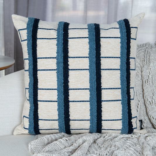 Capa Almofada Bordada com Fio Boucle Azul 50x50cm Concept
