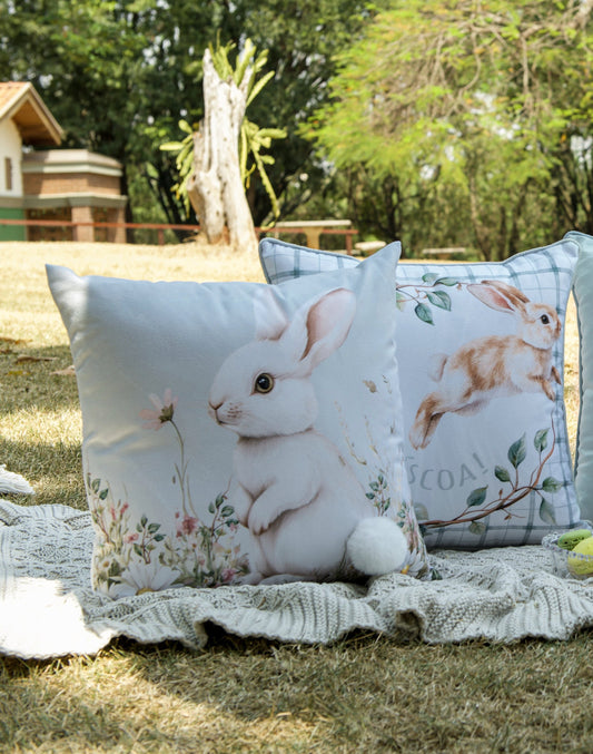 Capa Almofada Aveludada Coelho Páscoa Flores 43x43cm