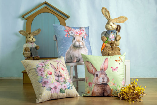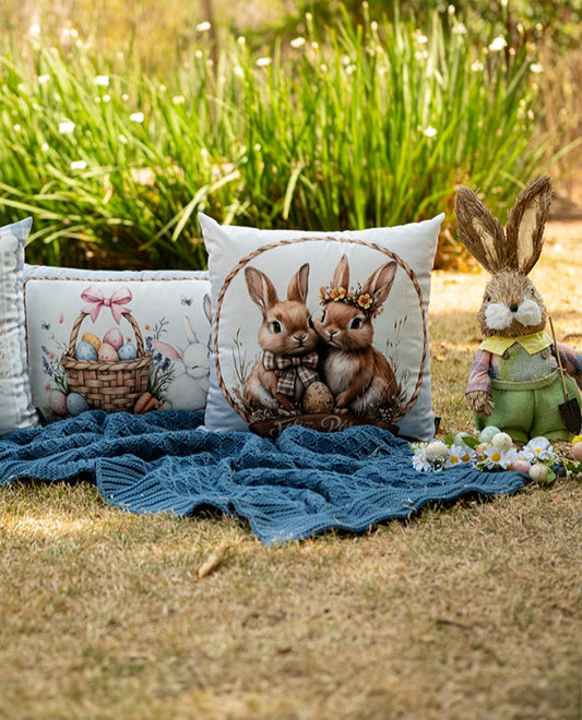 Kit 2 Capas de Almofada Páscoa Rústica - Coelhos e Ovos 43x43cm