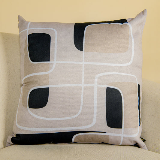 Capa Almofada Rústica Formas Branca Preto Bege Durand 43x43 cm