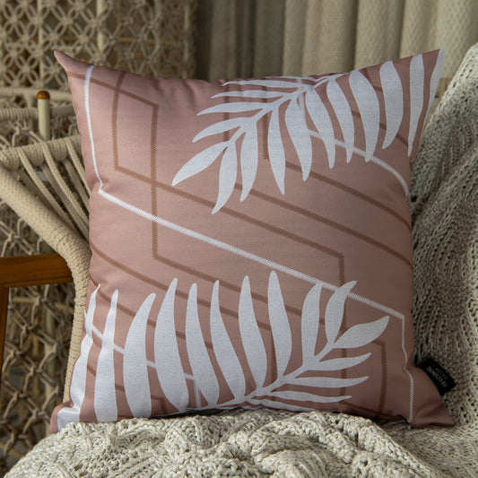 Capa Almofada Rústica Folhagens Rosê e Branco Durand 43x43 cm