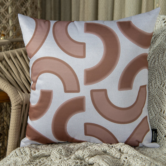 Capa Almofada Rústica Meio Círculos Rosê e Branco Durand 43x43 cm
