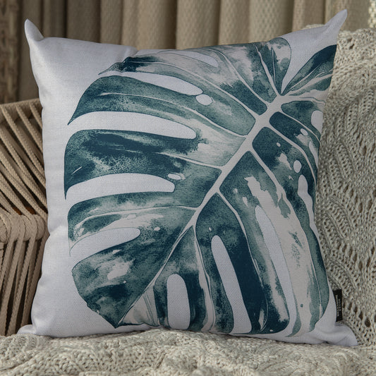 Capa Almofada Rústica Folhagens Turquesa e Branco Durand 43x43 cm