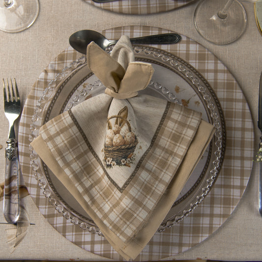Kit 2 Guardanapos Linho Xadrez Cesta Ovos de Páscoa 40x40cm