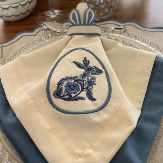 Kit 2 Porta Guardanapo Orelha de Coelho Páscoa Bordada Azul 6,9 cm x 15 cm