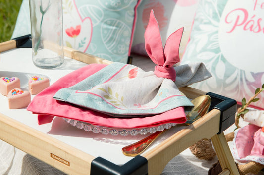 Kit 2 Guardanapos Páscoa Tricoline Floral Verde Pastel 40x40 + 2 Argolas