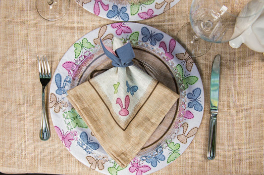 Kit 2 Guardanapo Bordado de Tecido Bege - Coelho da Páscoa 43x43cm