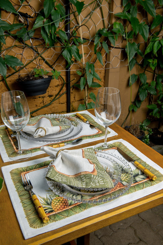 Kit 2 Guardanapos Linho Tropical 40x40 + 2 Argolas