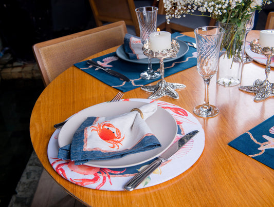 Kit 2 Guardanapos Linho Bordado Náutico 40x40 + 2 Argolas
