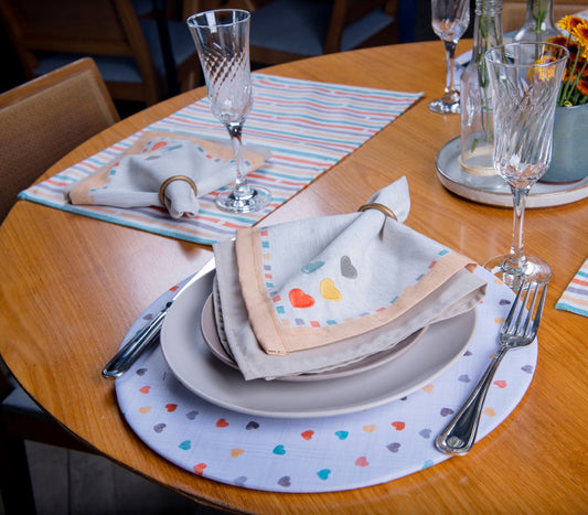 Kit 2 Guardanapos Linho Bordado Coração 40x40 + 2 Argolas