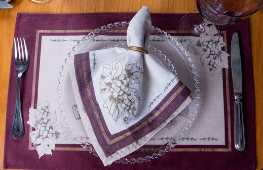 Kit 2 Guardanapos Linho Vinho Uva 40x40 + 2 Argolas