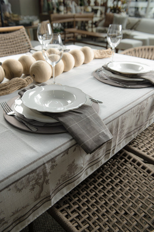 Kit 2 Guardanapos Linho Cinza Xadrez 40x40 + 2 Argolas