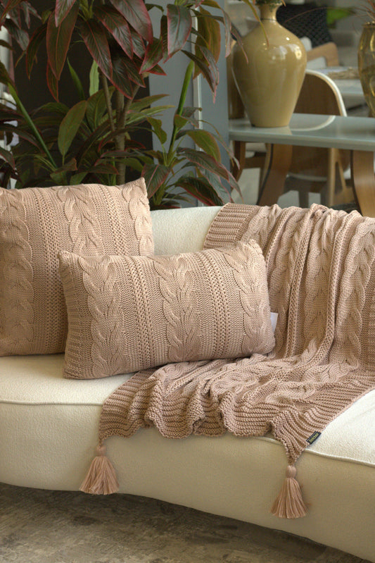 Manta Tricot Rosê 90x180 cm com Tassel - Trançada