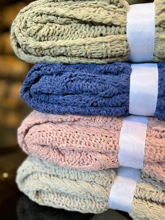 Manta Tricot Trançada Azul 130x150 cm - Chenille