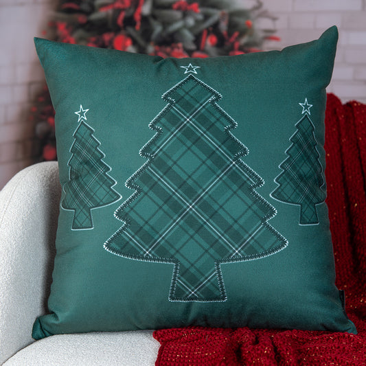 Capa p/ Almofada Natalina Árvores de Natal Verde 43x43cm