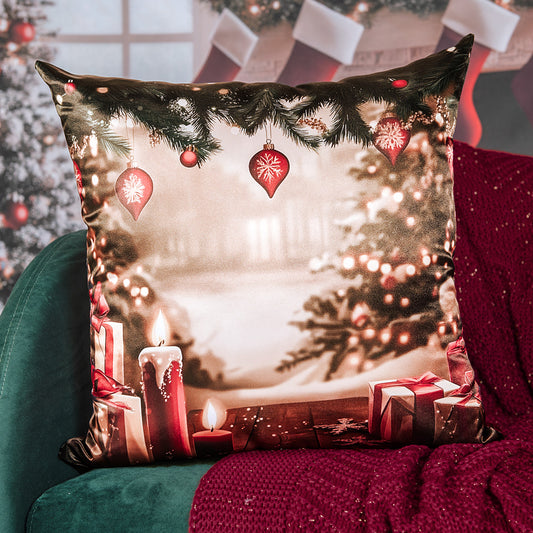 Capa p/ Almofada Cetim Natalina Velas e Presentes 43x43cm