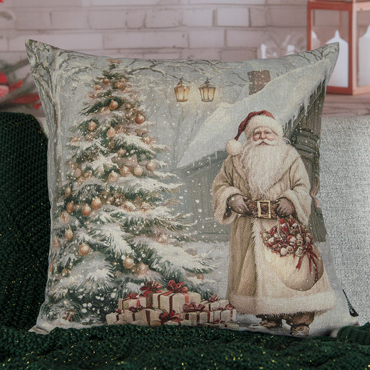 Capa p/ Almofada Rustic Linen Natalina Árvore de Natal e Papai Noel 43x43cm
