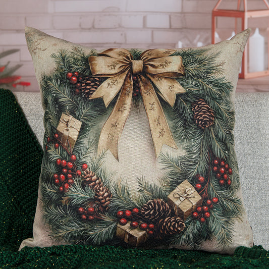 Capa p/ Almofada Rustic Linen Natalina Guirlanda 43x43cm