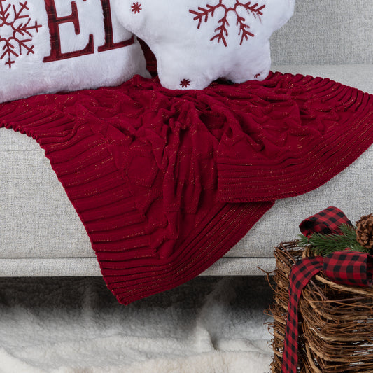 Manta Natalina em Tricot Vermelho com Linhas Douradas 90x180