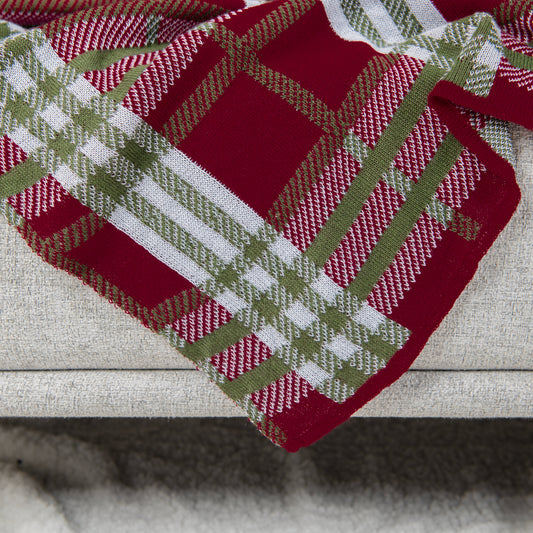 Manta Natalina em Tricot Xadrez Vermelho e Verde 90x180