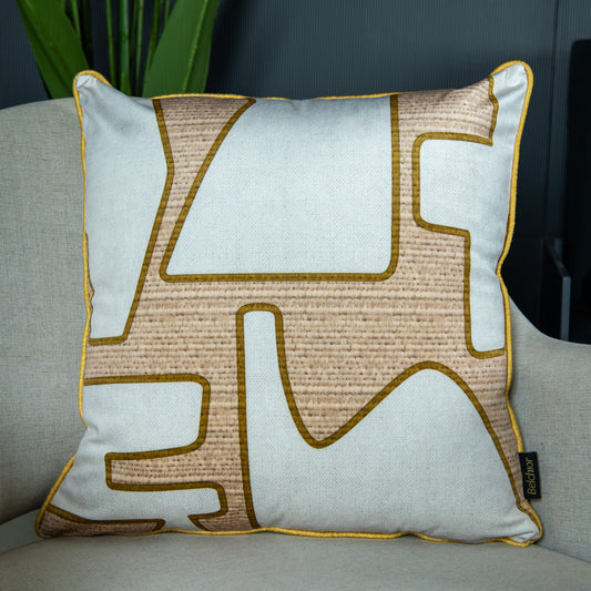 Capa Almofada Veludo Bege Abstrata c/ Cordonê 43x43cm