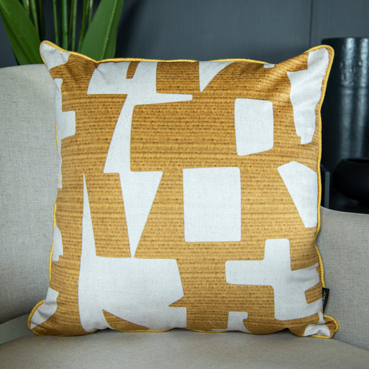 Capa Almofada Veludo Mostarda Abstrata c/ Cordonê 43x43cm