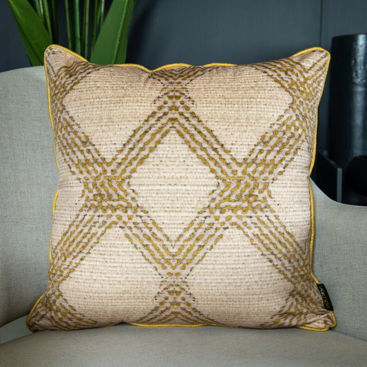 Capa Almofada Veludo Mostarda Geométrica c/ Cordonê 43x43cm