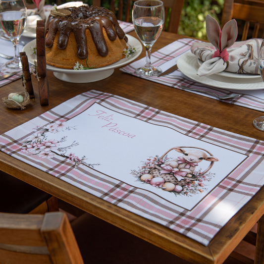 Kit 2 Jogo Americano Xadrez Rosa Cordeirinho Páscoa 48x31
