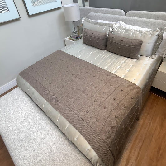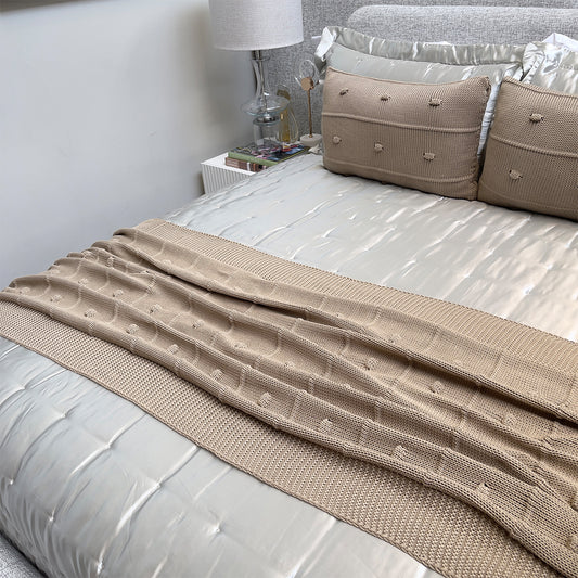 Peseira Tricot para Cama Bege Capuccino 90x240cm Bolinha
