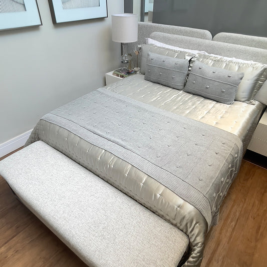 Peseira Tricot para Cama Cinza Névoa 90x240cm Bolinha