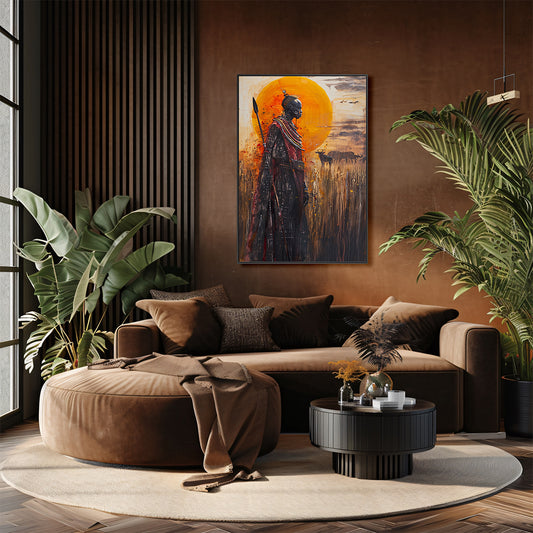Quadro Homem Africano Tela em Tecido Moldura 3D Preta - Grande 80x120cm